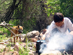 Джек помогал ломать сухие ветки для костра, чихал от едкого
