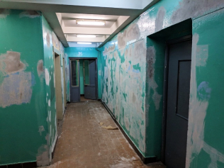 Плитки выбиты. Стены пестры.