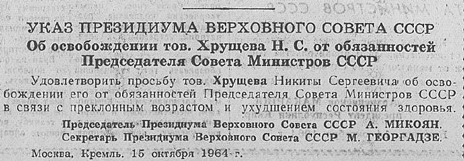 неотвратимым свое смещение с руководящих постов, так как в середине 1964
