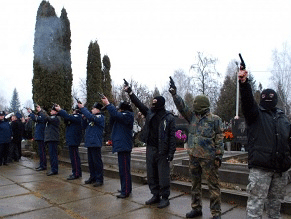 правоохранители в форме и бойцы «Правого сектора» в масках дали в воздух
