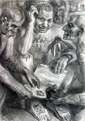 Иллюстрации: Геннадий Добров - пациенты психбольниц с натуры. Сам