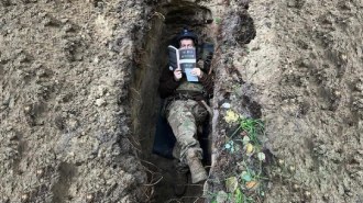 Світлина українського воїна, який читає книгу Тімоті Снайдера в окопі