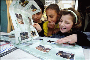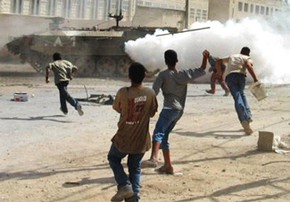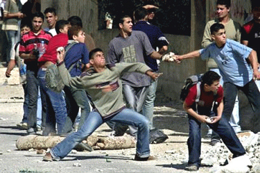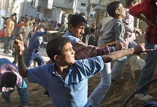 Палестинская молодежь закидывет камнями сионистских оккупантов в лагере беженцев Балата 23 ноября 2003 года