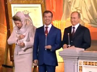 перед телекамерами на пасхальной службе в храме